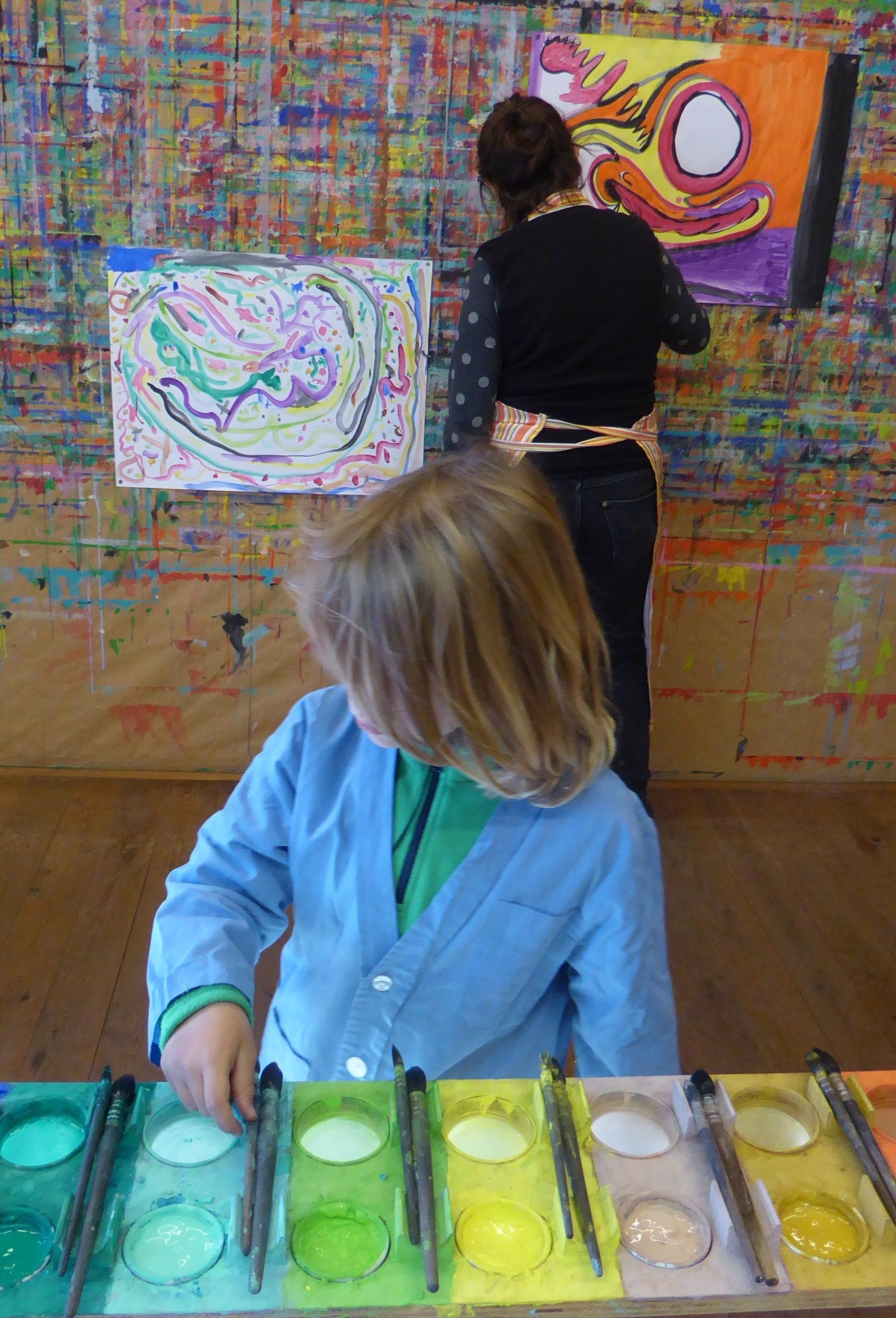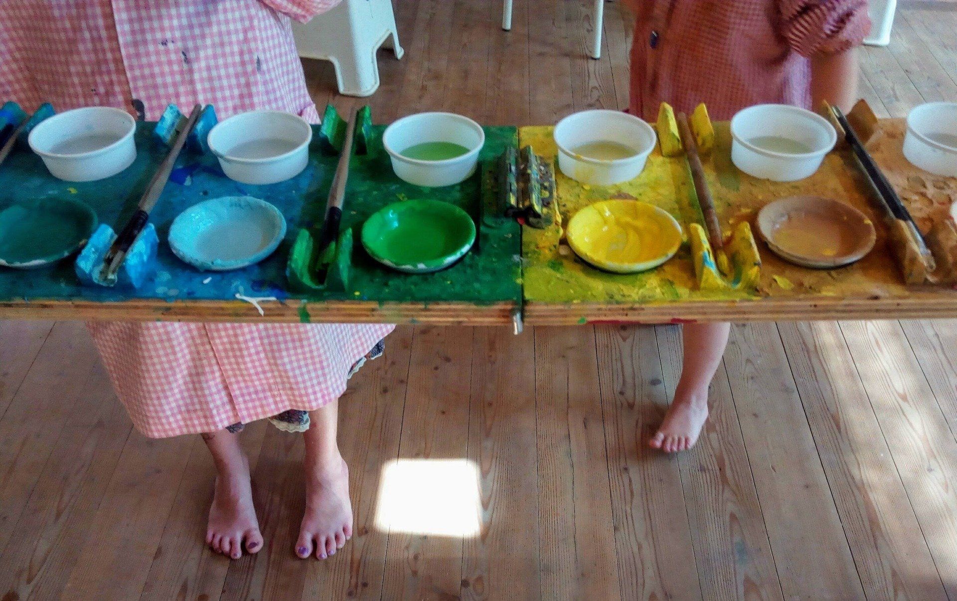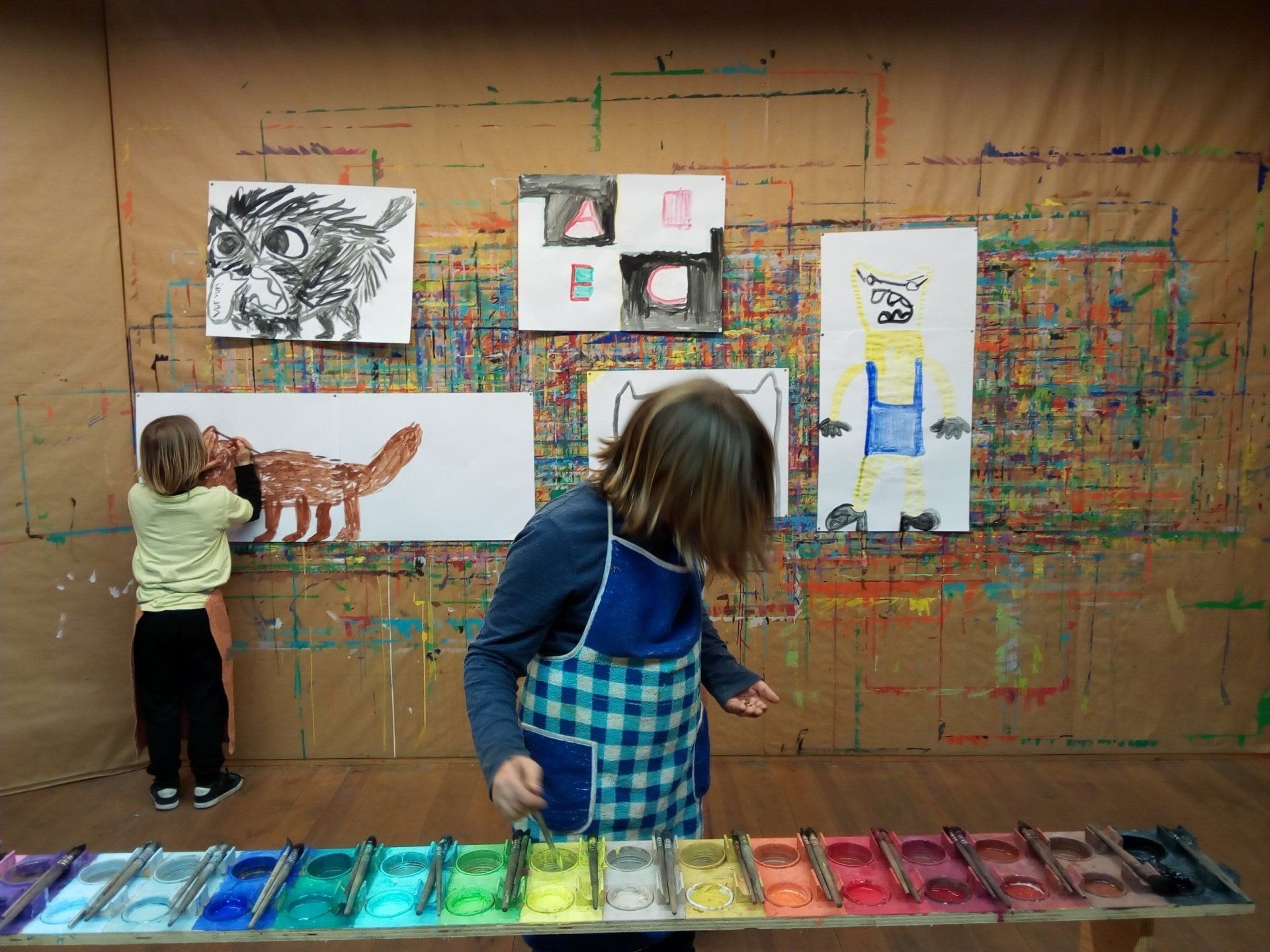 Un espai per gaudir, experimentar i donar rellevància a la creació lliure i no dirigida a l'escola a partir de la pintura, el dibuix i el modelatge.