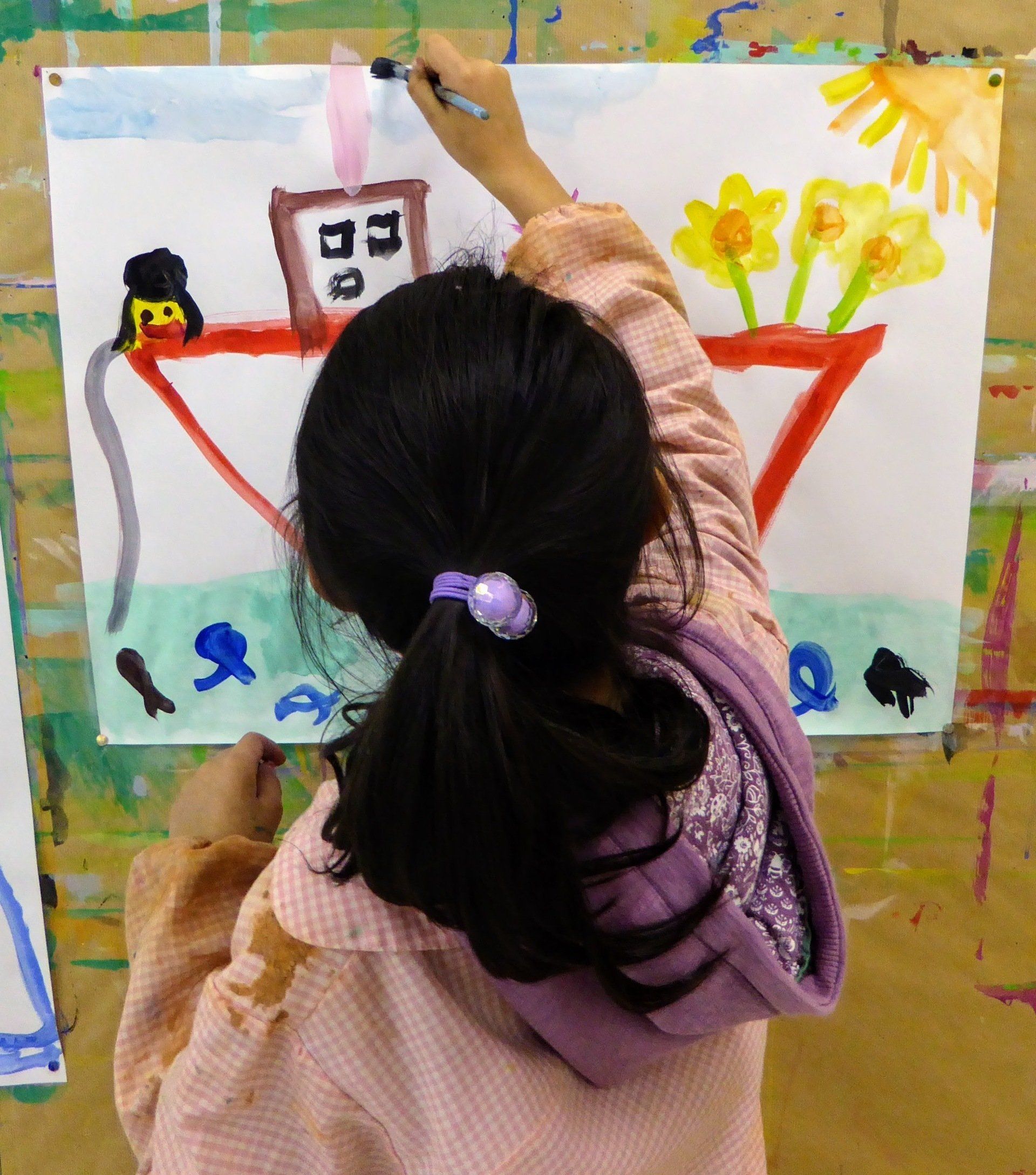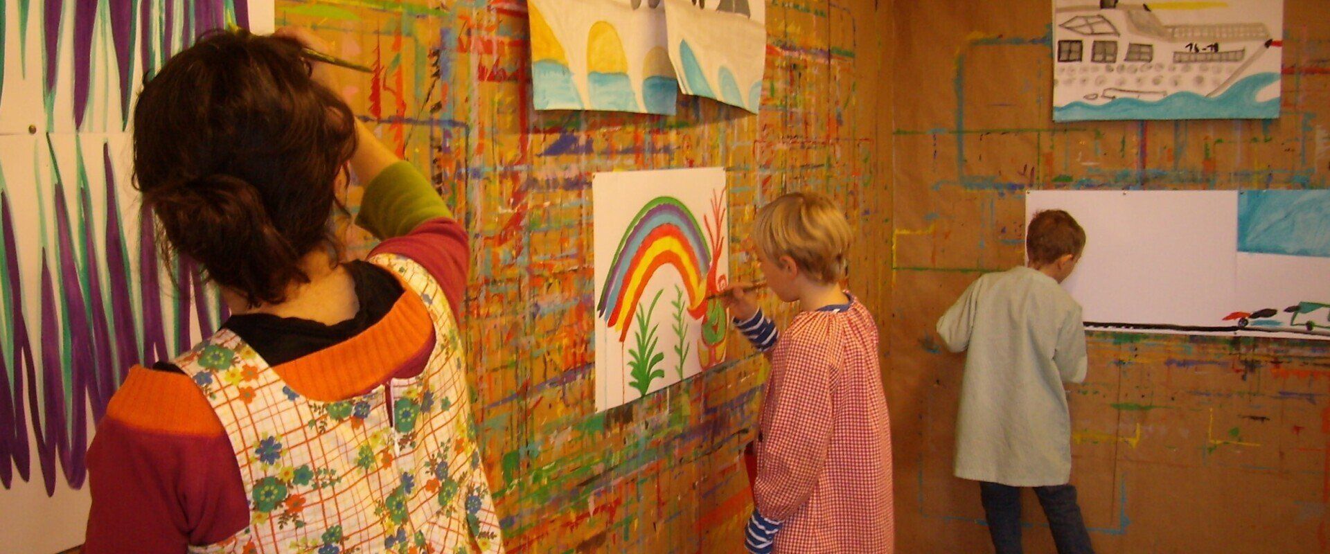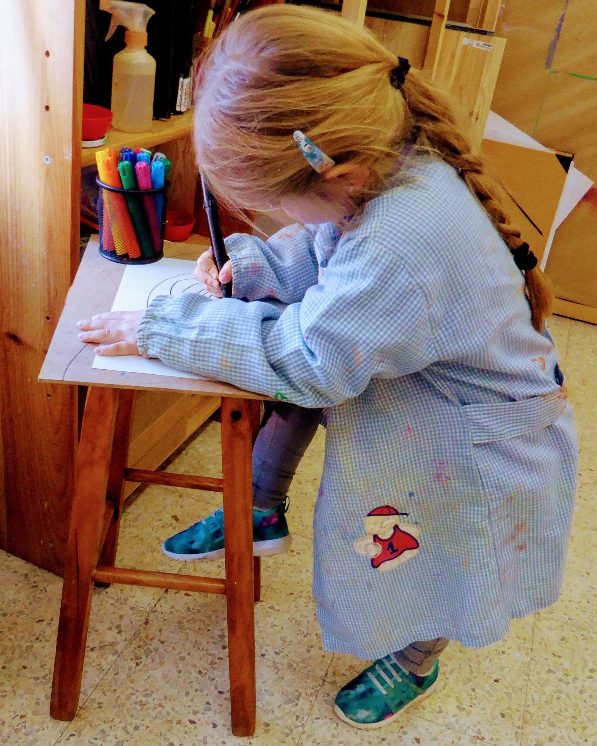 Un espai per gaudir, experimentar i donar rellevància a la creació lliure i no dirigida a l'escola a partir de la pintura, el dibuix i el modelatge.
